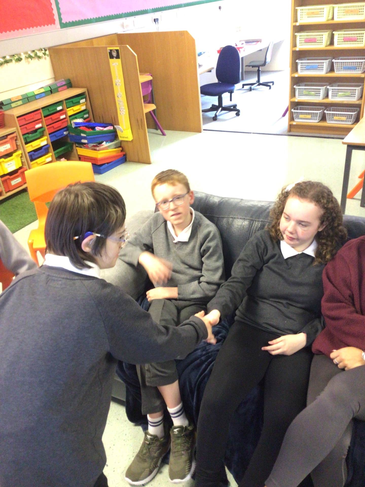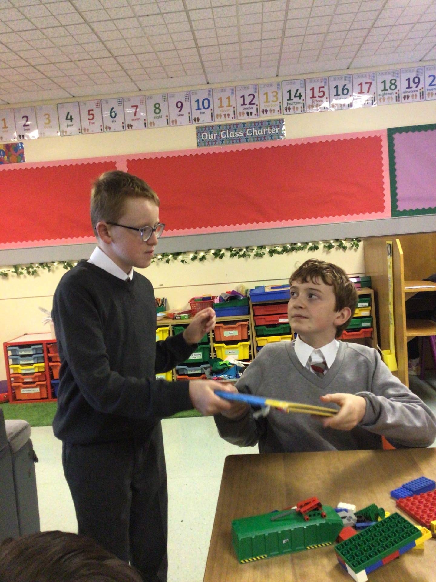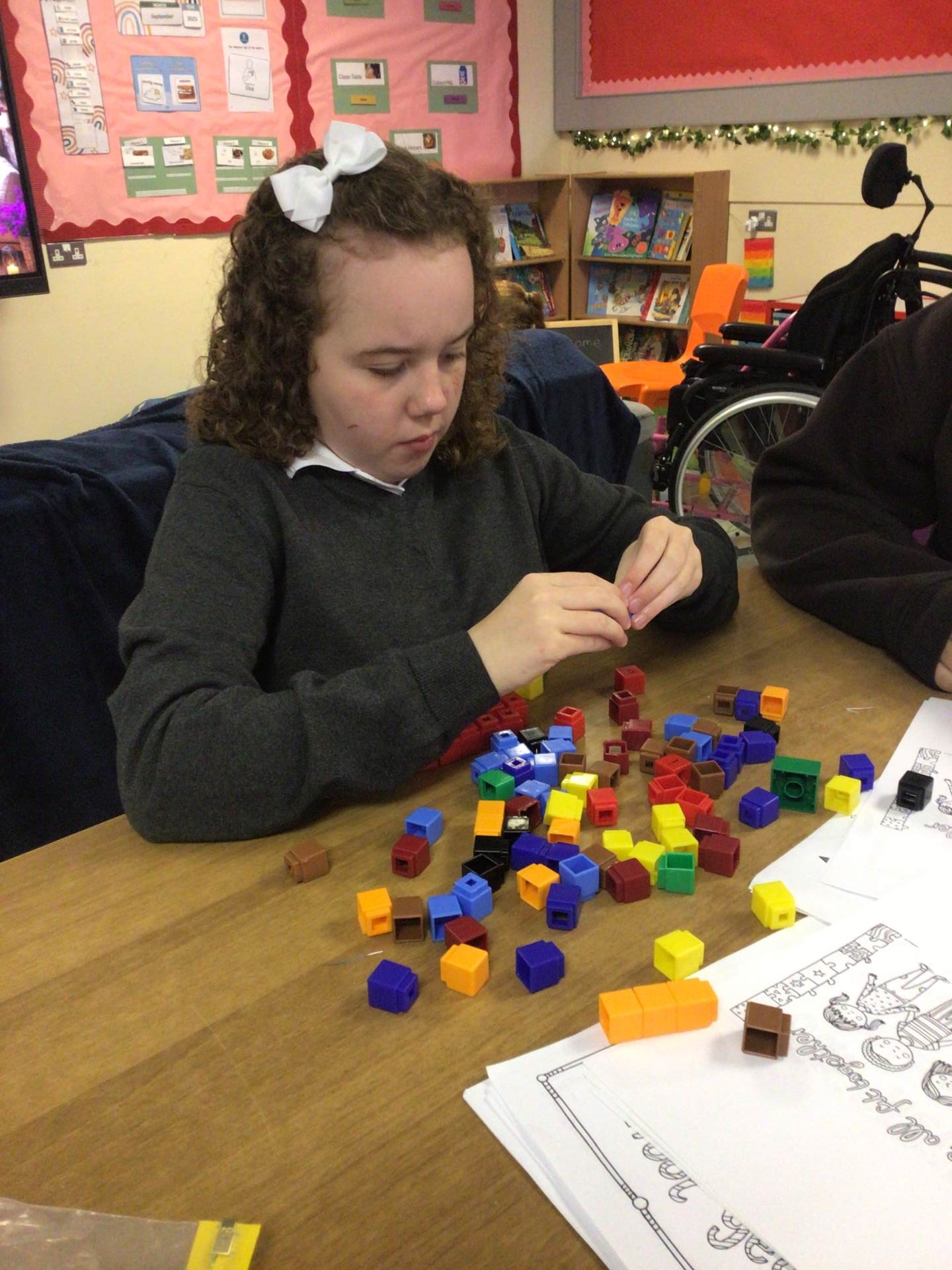 In Class 13 we have six pupils; our teacher is Miss Mc Clelland and our classroom assistants are Ciara, Julie-Ann and Diane. Everyone has settled really well into the new classroom and we are getting used to our new routine.